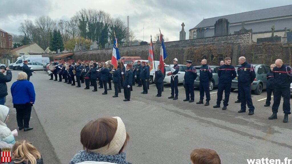 Avant la cérémonie de remise de médailles, les musiciens et les sapeurs-pompiers ont participé au défilé qui les a conduit au monument aux Morts pour un dépôt de gerbe en présence de la sénatrice Marie Lermytte.