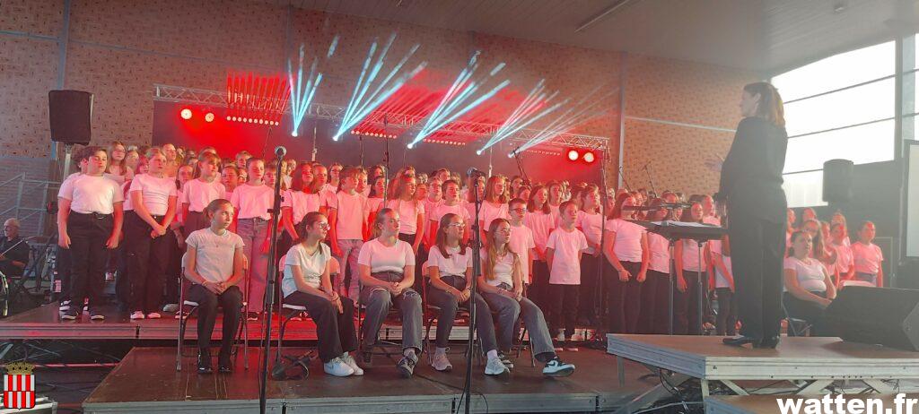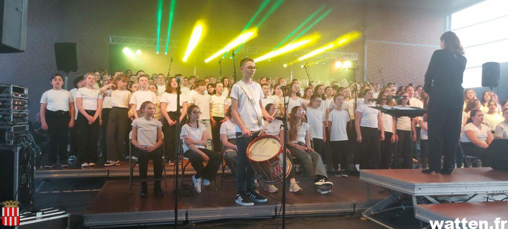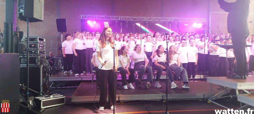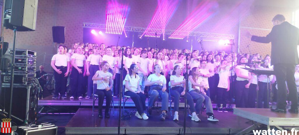 Les collégiens étaient issus de quatre établissements qui participent habituellement à ces rencontres chorales: les collèges Jacques Prévert de Watten, les Dentelliers de Calais, du Looweg de Crochte, les Argousiers de Oye-Plage, avec pour la première fois la participation du collège Pierre et Marie Curie de Gravelines, et une section musicale du lycée Ribot et du conservatoire de la Capso.