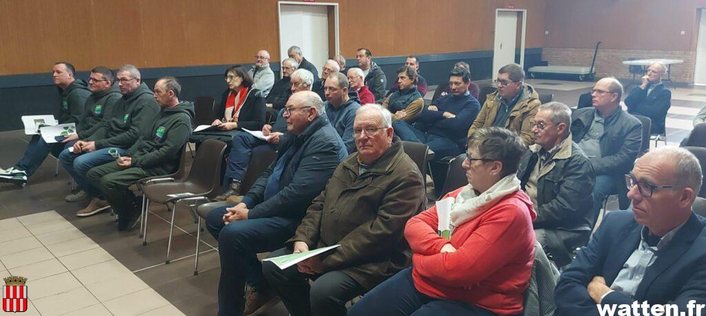 Les participants, représentants des communes adhérentes, administrateurs, agriculteurs, organismes financeurs ou associés, et piégeurs ont été accueillis par le maire de Watten Daniel Deschodt, avant que le président Maurice Vanderfaillie n’évoque le bilan annuel de 2024 qui a vu la capture de 2730 animaux, soit 23% de plus qu’en 2023.