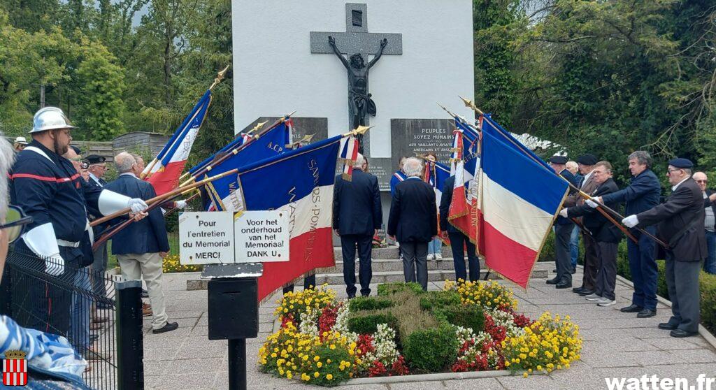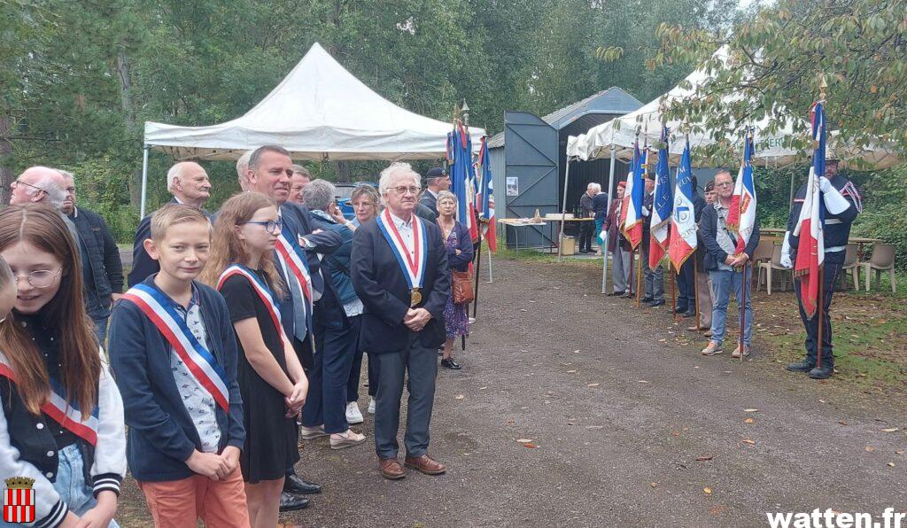 Notre ville était représentée lors de cette cérémonie par son maire Daniel Deschodt, Jean-Luc Avart 1er adjoint, Rudolph Buckman conseiller municipal qui portait le drapeau de l’association locale des Anciens Combattants, Patrick Tartart président de ladite association, et une délégation des sapeurs-pompiers de Watten avec leur drapeau conduite par le capitaine Daniel Hollant ainsi qu’une délégation des Amis du Vieux Watten et de sa Région.