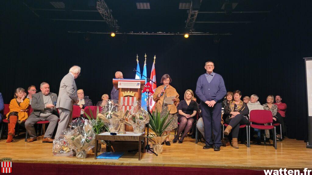 Pour cette cérémonie des vœux du samedi 4 janvier, trois wattenais ont été mis à l’honneur par le Maire Daniel Deschodt pour leur investissement de longue date dans la vie associative et communale: Jean-Pierre Hollant, Joël Ducrocq et un moulin d’or pour Anne-Marie Questier. Les membres du nouveau Conseil Municipal des Jeunes ont été présentés!