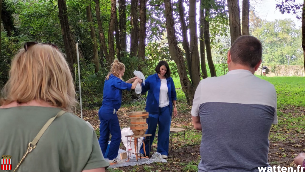 Samedi 16 septembre après-midi la visite des fortifications et du site de l’abbaye a intéressé 35 personnes, répartis deux groupes qui ont suivi les explications des guides Laurent Lecoutre et Jean-Luc Avart. Cette découverte a été suivie dans le parc de l’abbaye d’une performance artistique contemporaine de Sarah Feuillas et Caroline Chaumont organisée par l’association le Conservatoire. Les visiteurs sont parfois venus de loin, région lilloise, audomarois, Flandre intérieure, pour découvrir l’histoire de Watten.