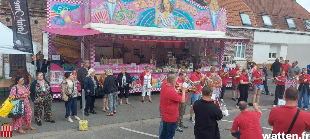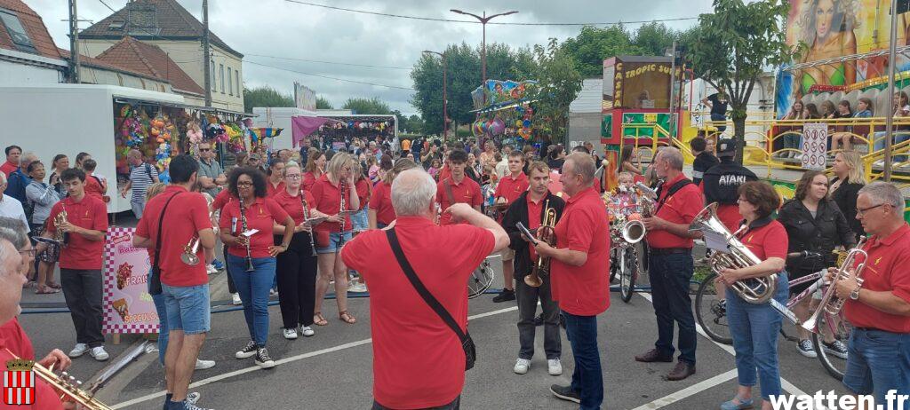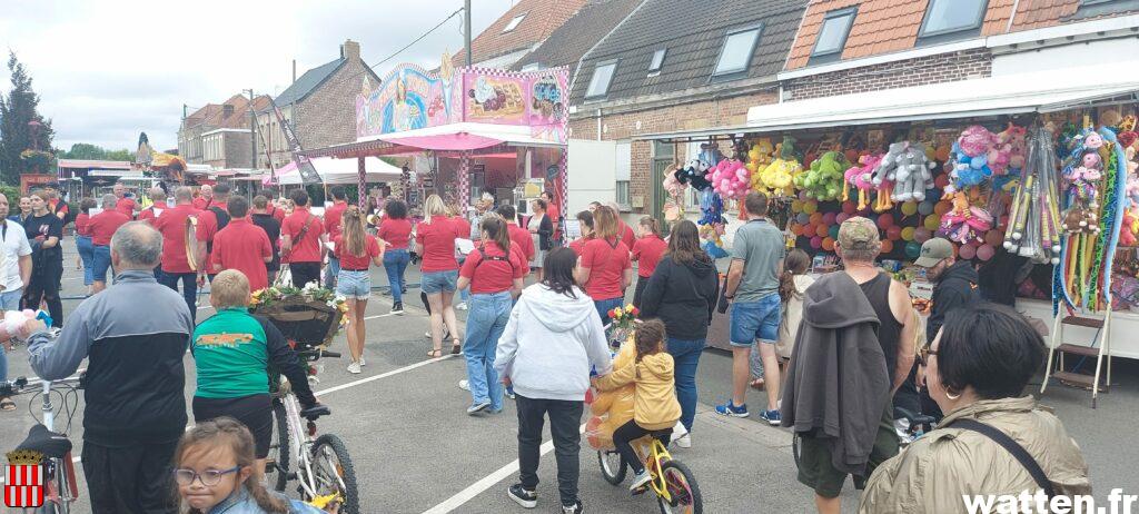 Après le goûter offert par l’Ehpad, les vélos ont défilé devant les pensionnaires rassemblés pour la circonstance. Emmenés par des musiciens de l’Orchestre d’Harmonie de Watten et le Club des Motards, le cortège inaugural a ensuite parcouru la ducasse jusque la place Leveaux et ses nombreuses attractions, ouvrant ainsi 4 jours de ducasse.