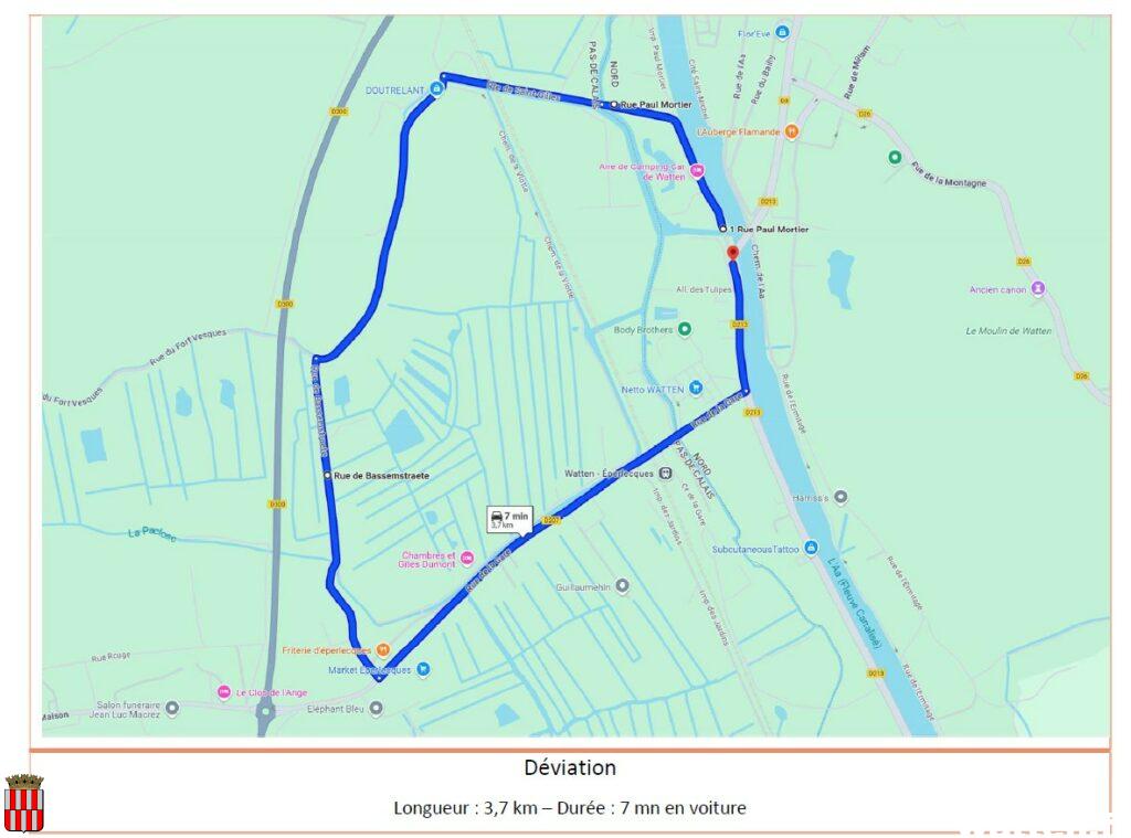 - Une déviation sera mise en place par Eperlecques (voir plan).
