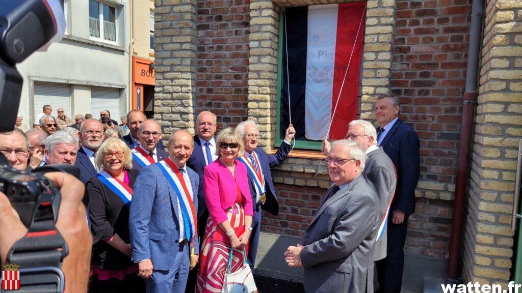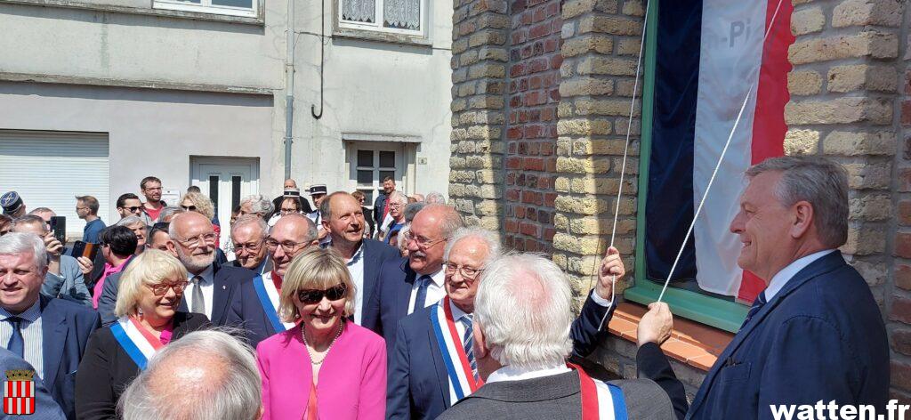 Après l’aubade de l’orchestre d’Harmonie de Watten, ce fut le dévoilement de la plaque et la coupure du ruban par les petits-enfants du sénateur, puis la visite de cette salle rénovée selon l’architecte Guy Tavart «dans le style voulu par celui qui l’a construite en 1863».
