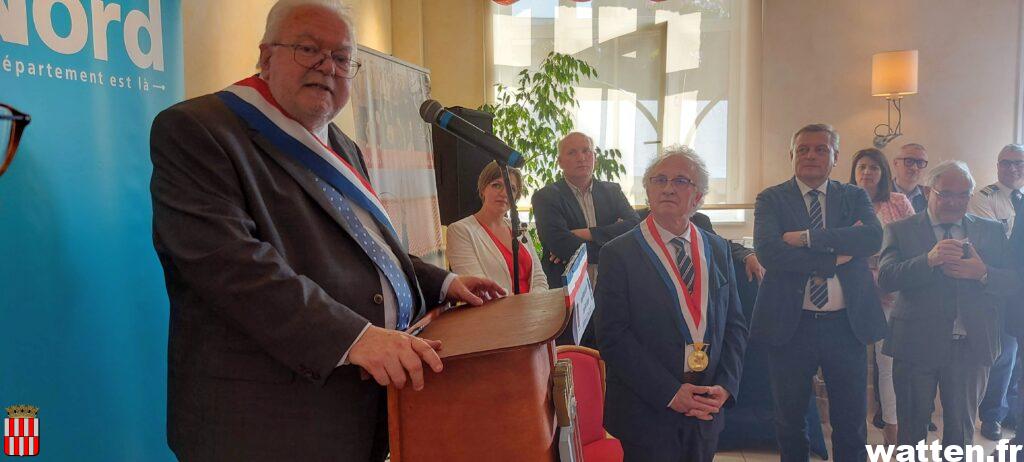 Daniel Deschodt, maire de Watten, a rappelé les 40 ans de présence et d’action de Jean-Pierre Decool comme élu local et comme parlementaire. Huit orateurs se sont succédés à la tribune parmi lesquels le président du département Christian Poiret ou Paul Christophe, député, qui ont salué l’engagement de celui qui est encore sénateur pour quelques mois. Les remerciements émus de Jean-Pierre Decool conclus par de longs applaudissements allèrent à toute l’assistance, à la ville de Watten et à son épouse fidèle collaboratrice.