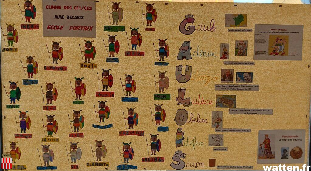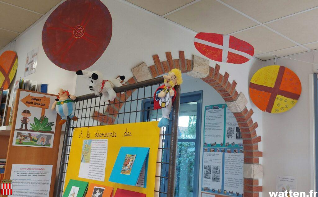 «Six classes ont participé et ont réalisé des fresques, des dessins, des mobiles, avec l’aide des bibliothécaires, indique Aline Harlay, les élèves des écoles Fortry, Brachet et du Sacré Cœur ont participé». « On a travaillé les boucliers gaulois dans le cadre des travaux d’arts plastiques, visualisé une vidéo sur le mode vie des gaulois et découvert Astérix et Obélix, la bande dessinée et les dessins animés, indissociables de cette époque», précise Mme Le Bars, enseignante à l’école Brachet présente avec les enfants et enseignants de l’école pour l’inauguration à laquelle on assisté plusieurs parents et élus.