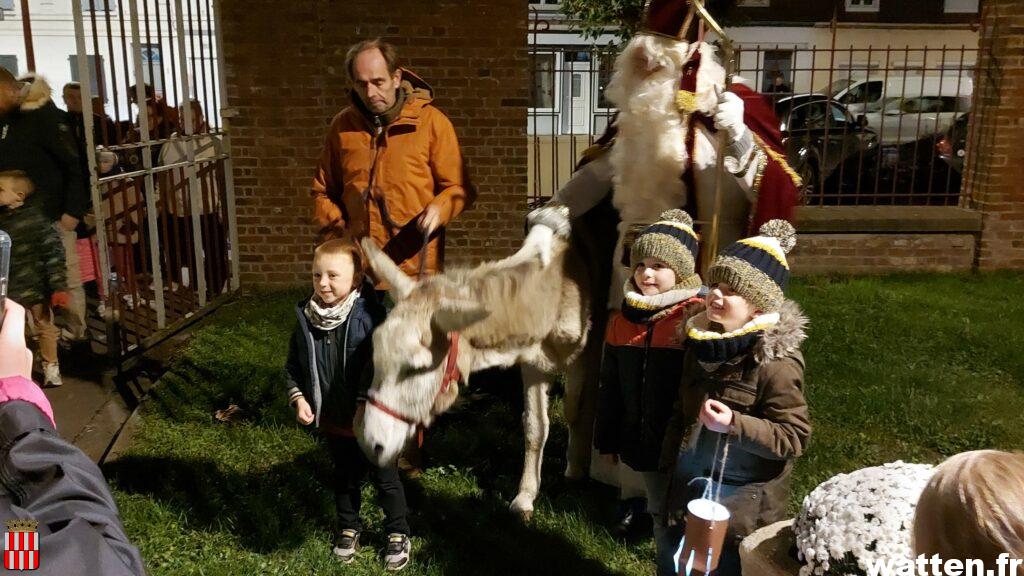Saint Martin et son âne ont conduit tout ce monde vers la salle St Gilles pour une distribution de friandises!