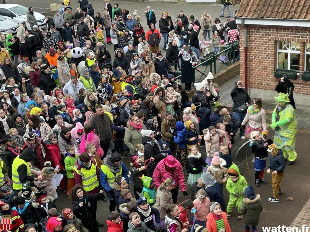 Les enfants grimés et déguisés ont défilé avec leurs enseignants et de nombreux parents. Le cortège a parcouru la rue de Millam, pour arriver à la mairie où il y a eu le lancer de «boules de Watten», friandises très prisées offertes par l’Union commerciale.