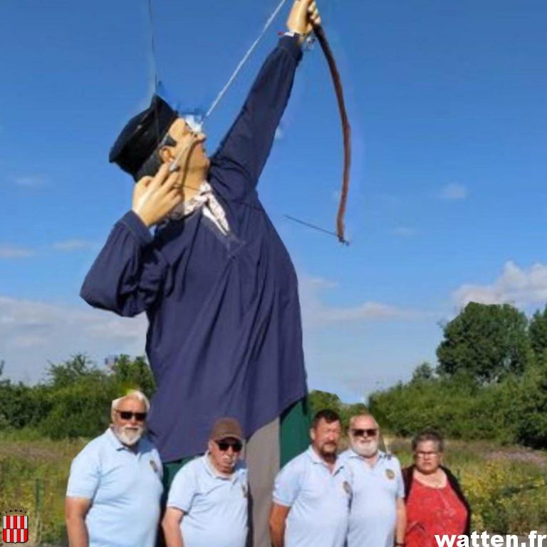 Il porte l’habit traditionnel de la fédération des archers du nord de la France. Au 18e siècle l’uniforme était constitué d’un habit de drap, brodé d’un galon d’or pour les officiers.