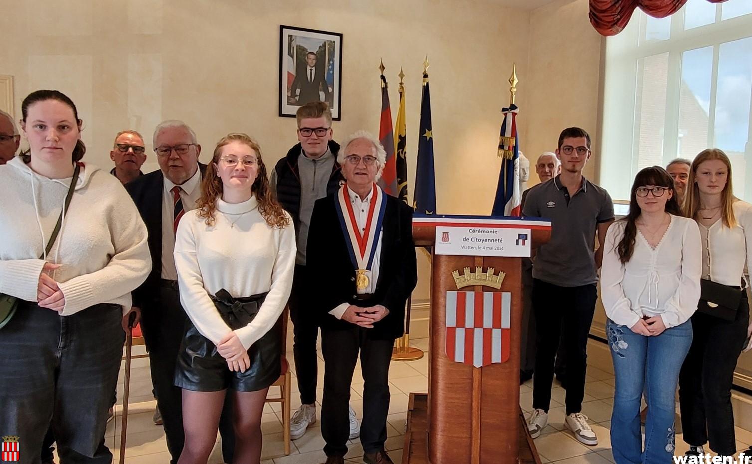 En présence de Jean-Pierre Decool, parlementaire honoraire, et de Marie-Claude Lermytte sénatrice, le maire a rappelé aux jeunes l’importance de la vie citoyenne, qui se manifeste entre autre par le droit de vote qui est un devoir civique chèrement gagné dans beaucoup de pays.