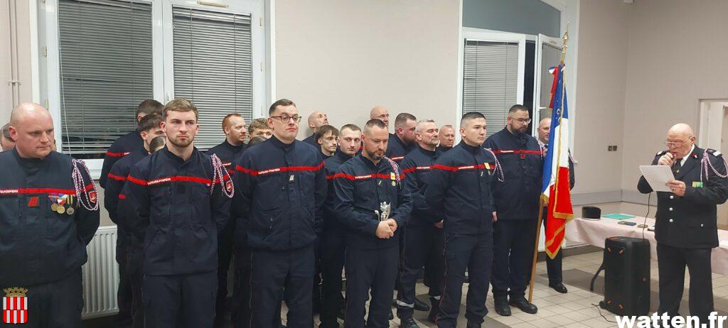 Une minute de silence a été observée à la mémoire des pompiers décédés, dont l’un encore récemment en portant secours pour un accident sur l’A16. La cérémonie s’est déroulée en présence du commandant Cyrille Girard adjoint au chef de groupement, et du commandant Cédric Liagre du pôle santé du groupement, qui a salué le rôle des sapeurs-pompiers pour porter assistance et secours, un discours relayé par celui du maire de Watten, Daniel Deschodt.