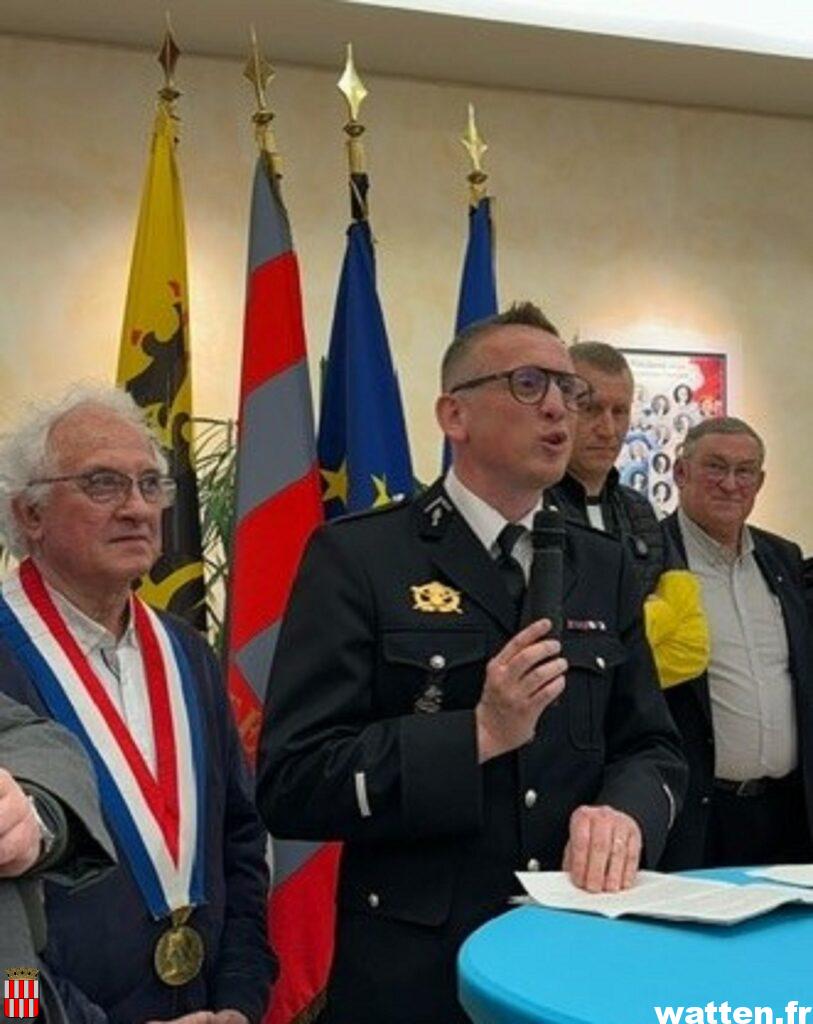 Entouré de plusieurs maires des communes voisines, Saint-Momelin, Millam, Saint-Pierrebrouck et Wulverdinghe, et de la sénatrice Marie-Claude Lermytte, de la famille et de nombreux collègues et amis du gendarme, Daniel Deschodt, maire de Watten, a rappelé le parcours de l’adjudant-chef qui sera resté presque 12 années à Watten. Il résuma le passage de Nicolas Duquene à Watten par ces 3 mots: «respect, simplicité et efficacité».