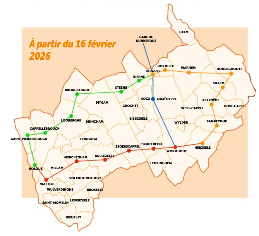Wormhout Centre aquatique Liné – Quaedypre/Socx Faubourg de Cassel – Bergues pôle d’échange Gare – Dunkerque gare