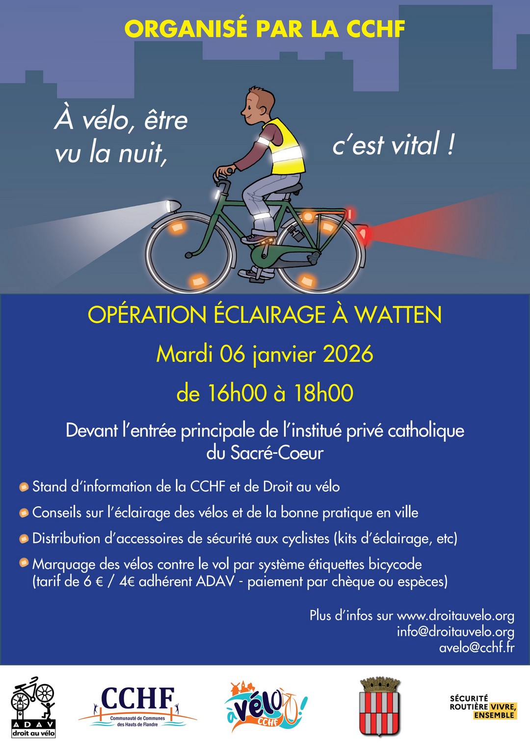 - Distribution d’accessoires de sécurité aux cyclistes (kits d’éclairage, etc.)