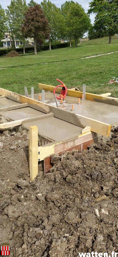 Enfin les bénévoles ont posé la peinture sur la nouvelle perche et son chapeau aux couleurs de Watten.