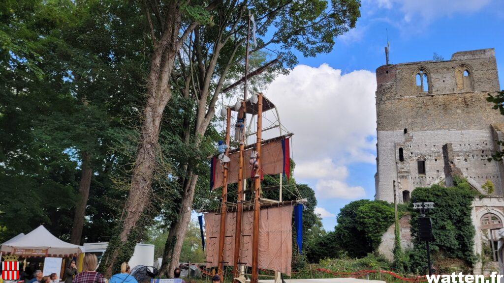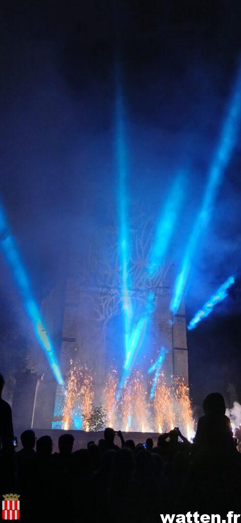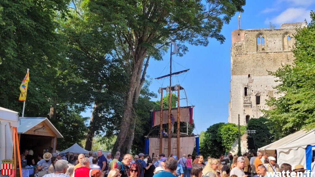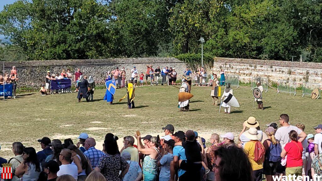 Spectacles équestres, fauconnerie et sorcières, combats de chevaliers… se sont succédé dans le village médiéval. La première journée s’est terminée en apothéose par un spectacle de feu et mapping sur la tour abbatiale. La deuxième journée a aussi été un grand succès populaire, avec ses catapultes à bonbon, combats de chevaliers, marché médiéval, cochon grillé…