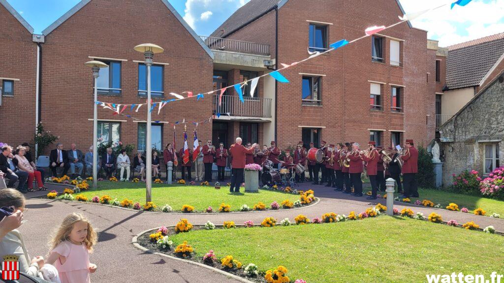Le traditionnel concert de l’Orchestre d’Harmonie l’Amicale de Watten a ouvert les festivités de la Fête Nationale du 14 juillet 2024 dans les jardins de l’Ehpad St-Hilaire. Il était suivi du défilé des sapeurs-pompiers et des élus jusqu’au monument aux Morts pour le dépôt d’une gerbe.