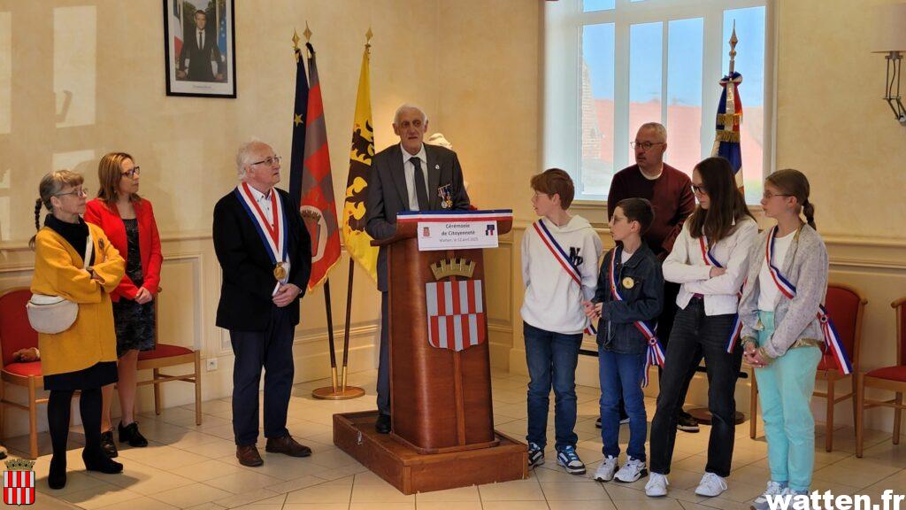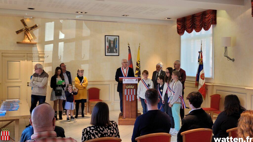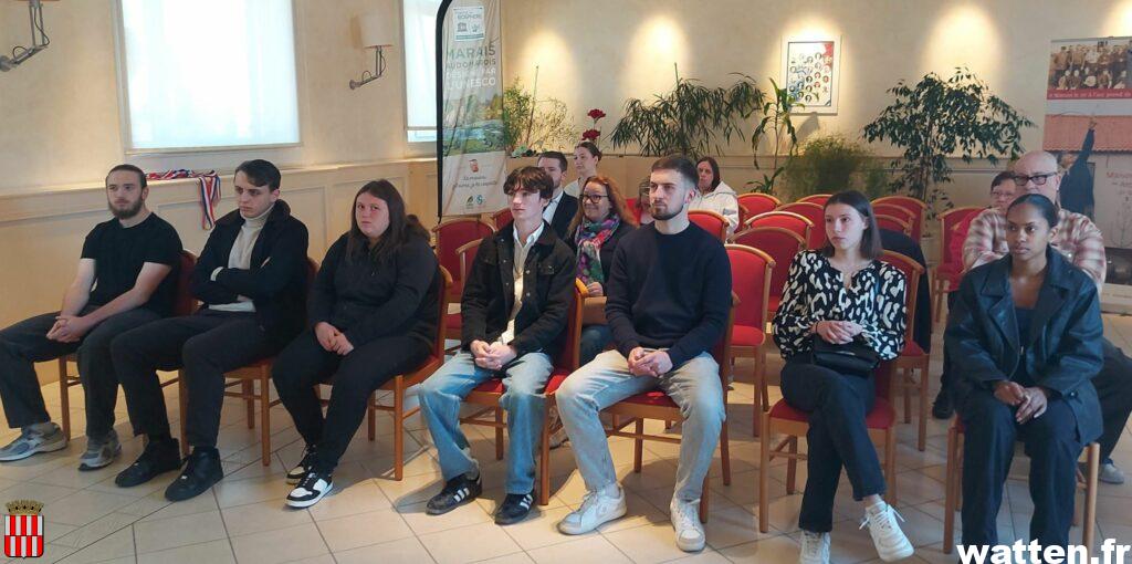 Peu de communes organisent encore la cérémonie citoyenne, car souvent il y a beaucoup d’invités et peu de réponses. A Watten 41 jeunes ayant atteint l’âge de voter avaient été invités en mairie ce samedi 12 avril 2025 matin pour recevoir leur carte d’électeur. Sept ont répondu présent.