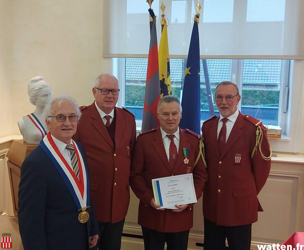 Ce dimanche 27 novembre 2022 les musiciens de l’Orchestre d’Harmonie l’Amicale de Watten ont fêté Sainte Cécile leur patronne, au cours de la messe où ils ont interprété plusieurs œuvres. Puis ils se sont retrouvés en mairie pour la remise des décorations. Le défilé prévu en ville a été annulé pour cause d’intempérie. Le président Philippe Hanon et le directeur Michel Decuyper ont remis six décorations: