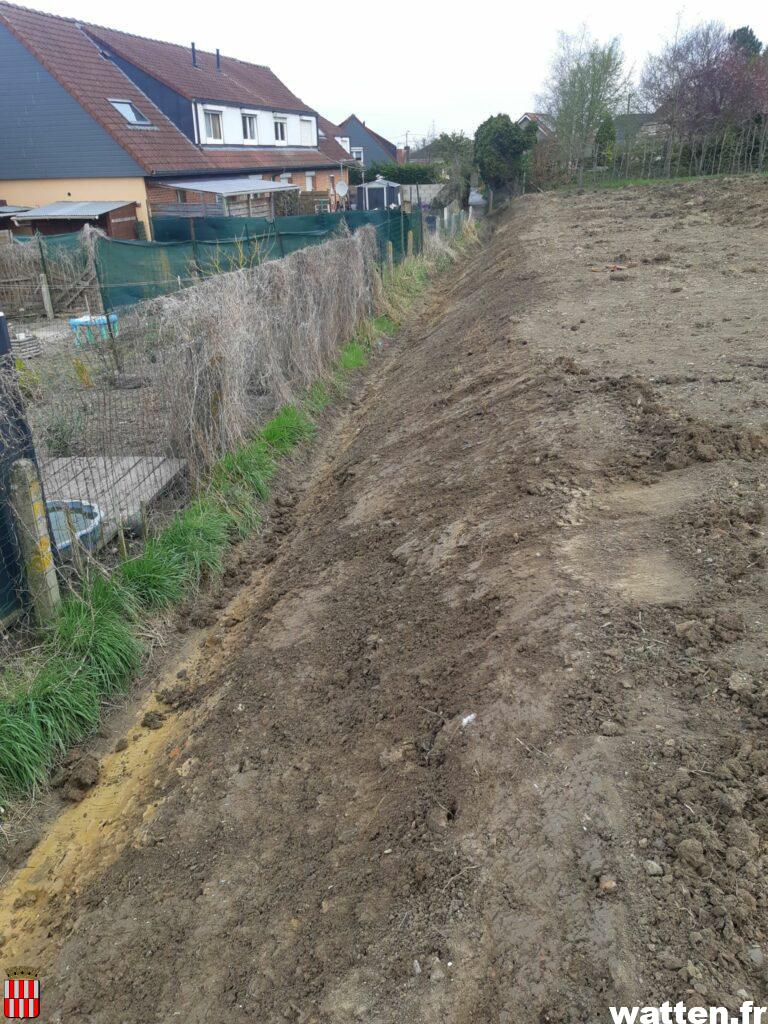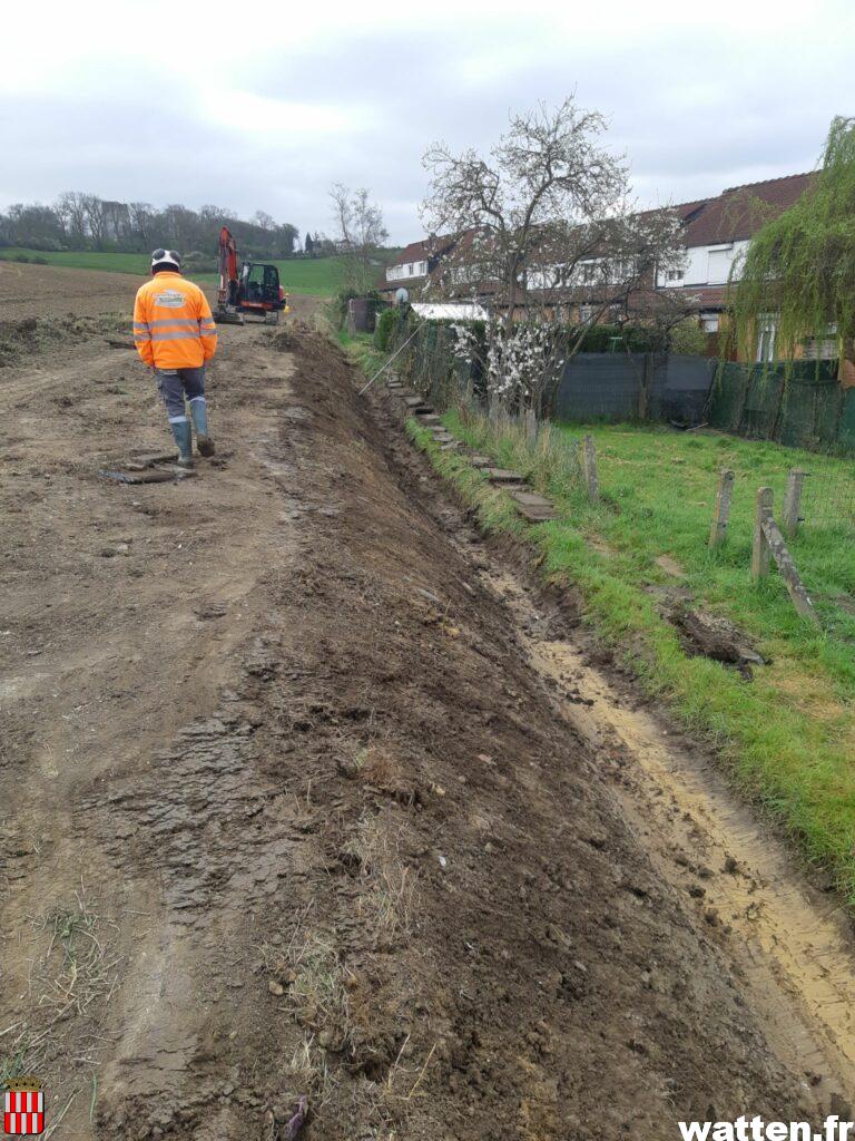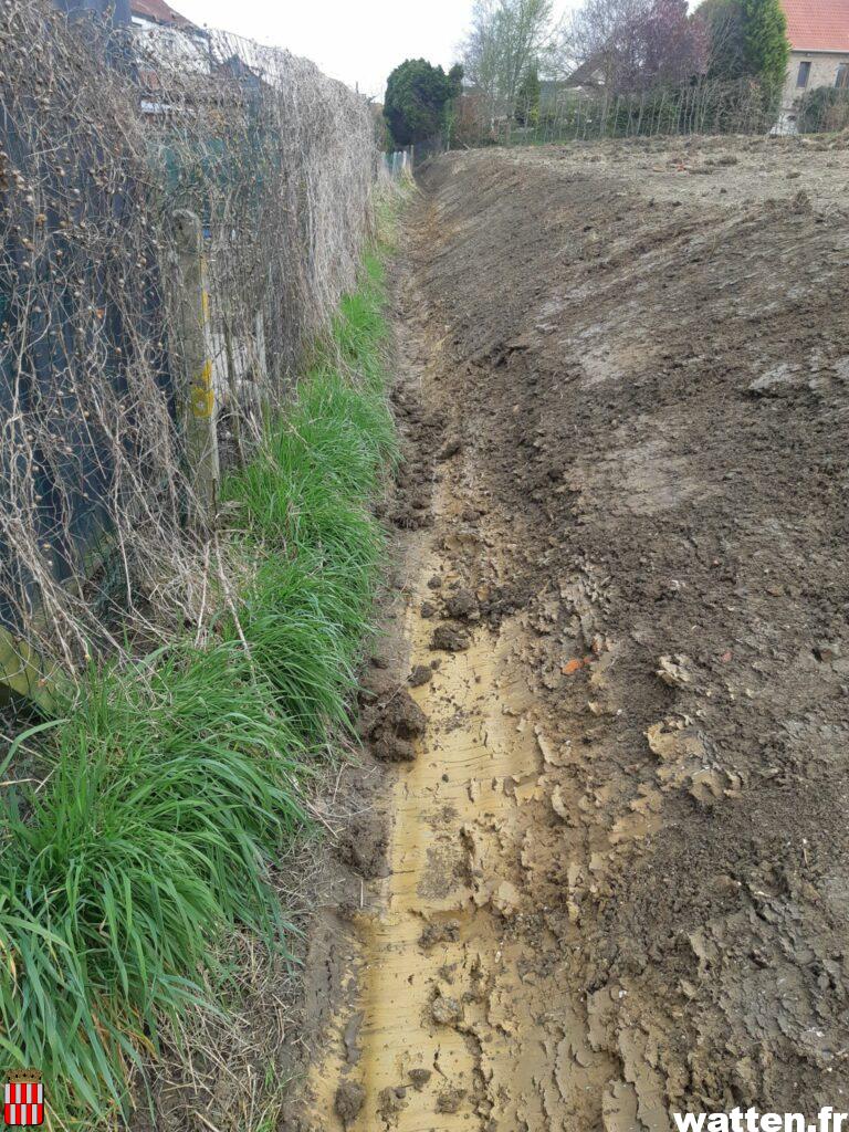 Après plusieurs mois d’attente, les travaux de creusement et de curage du fossé derrière les maisons de la rue des Marguerites ont pu être réalisés fin mars et début avril 2025 par l’entreprise Dubrule, qui a su se rendre rapidement disponible pour réaliser les travaux.