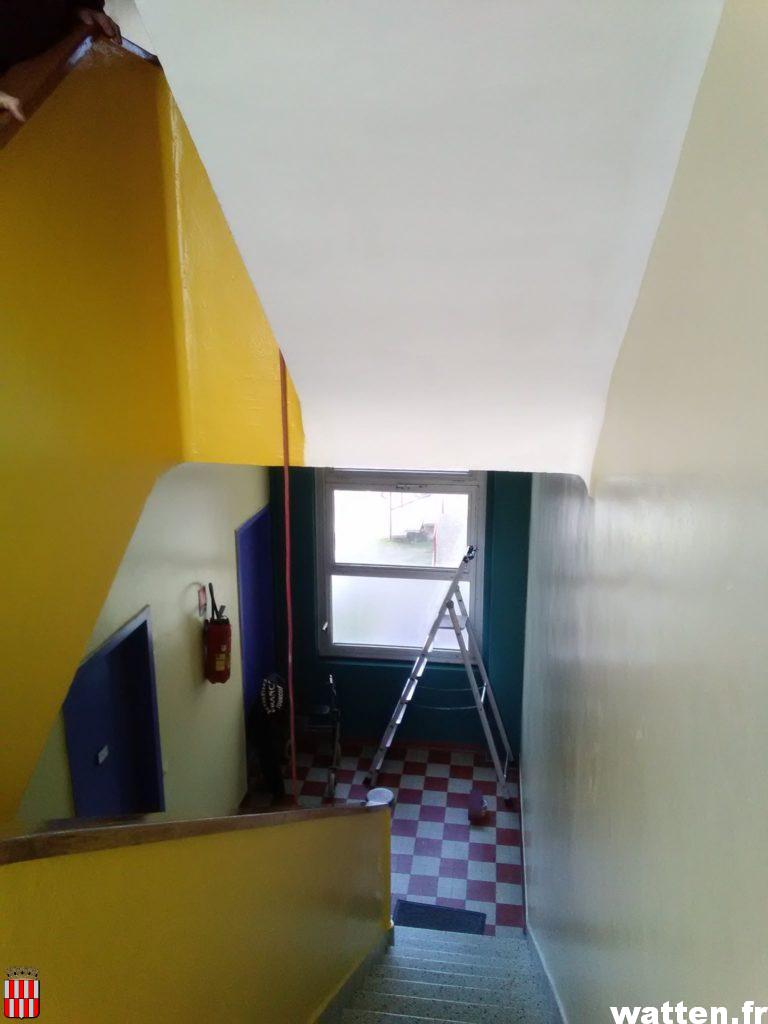 Les cages d’escaliers et halls des appartements situés à l’école Brachet ont été repeints par le personnel communal.