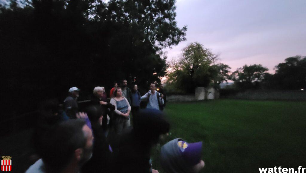 C’est dans le bois de l’abbaye que la recherche a été la meilleure! Les participants ont pu assister au ballet nocturne des chiroptères chassant les insectes nocturnes: des pipistrelles communes ont pu être observées. A noter que toutes les espèces de chauves-souris sont protégées. Chaque individu peut manger jusqu’à 2000 insectes par nuit!