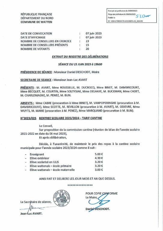 025 RENTREE SCOLAIRE 2023-2024 TARIF CANTINE